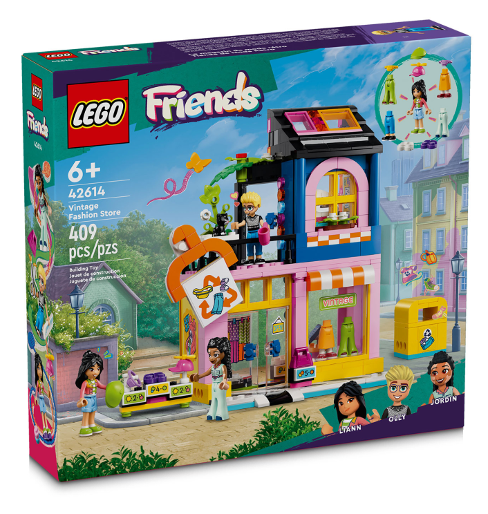 Inspire young builders to think about the planet while having fun with fashion with this social-emotional toy. The LEGO Friends Vintage Fashion Store (42614) shopping toy for kids, girls and boys aged 6+ includes 3 LEGO Friends characters, a cat figure and accessories.