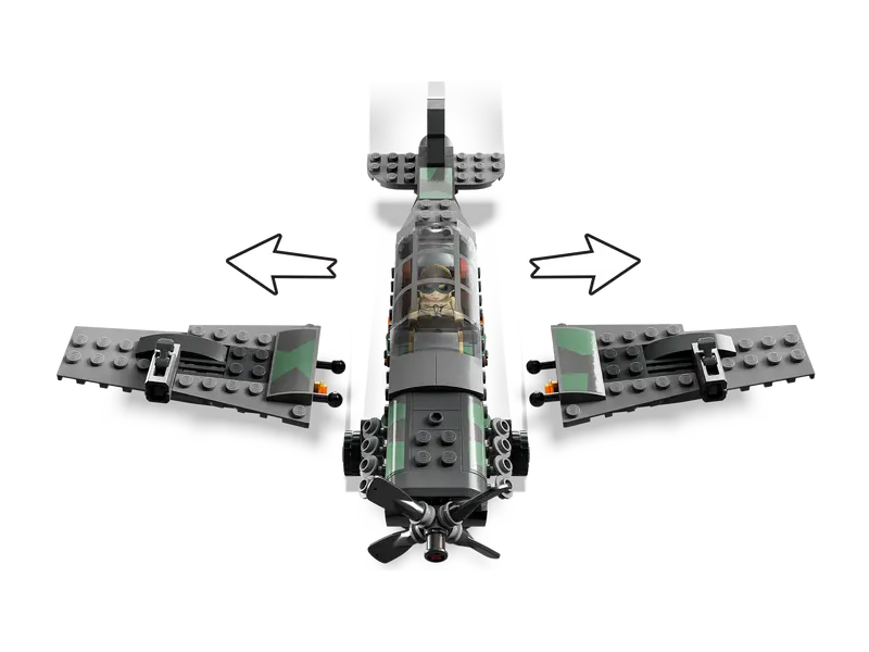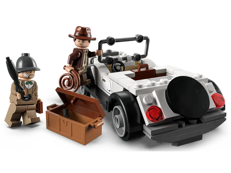 LEGO® Indiana Jones™ Fighter Plane Chase (77012) comes with everything kids aged 8+ need to enjoy hours of creative play. The playset features a brilliant fighter plane with a propeller, 2 stud shooters and removable wings, plus a supercool vintage convertible car with a chest in the back containing an umbrella and a pistol.