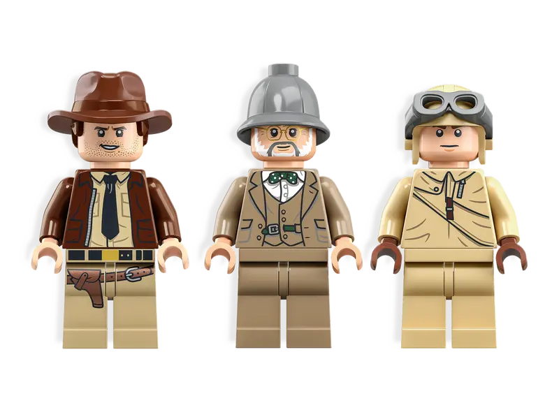 The building set comes with 3 minifigures: Indiana Jones with his famous whip, his father Professor Henry Jones Sr.™ holding a diary, and a fighter pilot so kids can play out a famous chase scene from the Indiana Jones and the Last Crusade movie.