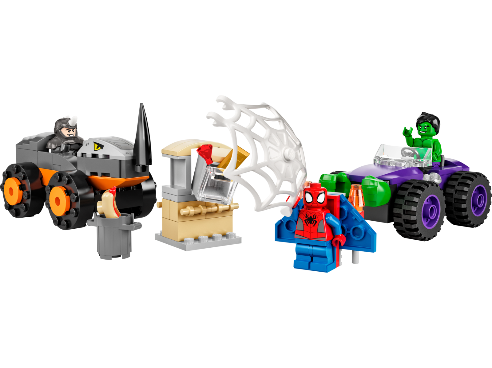 - Spidey and Hulk stop Rhino in his tracks – Kids and grown-ups will love the smashing action as the two monster cars clash and Spidey flies in to trap Rhino in his web and save the day