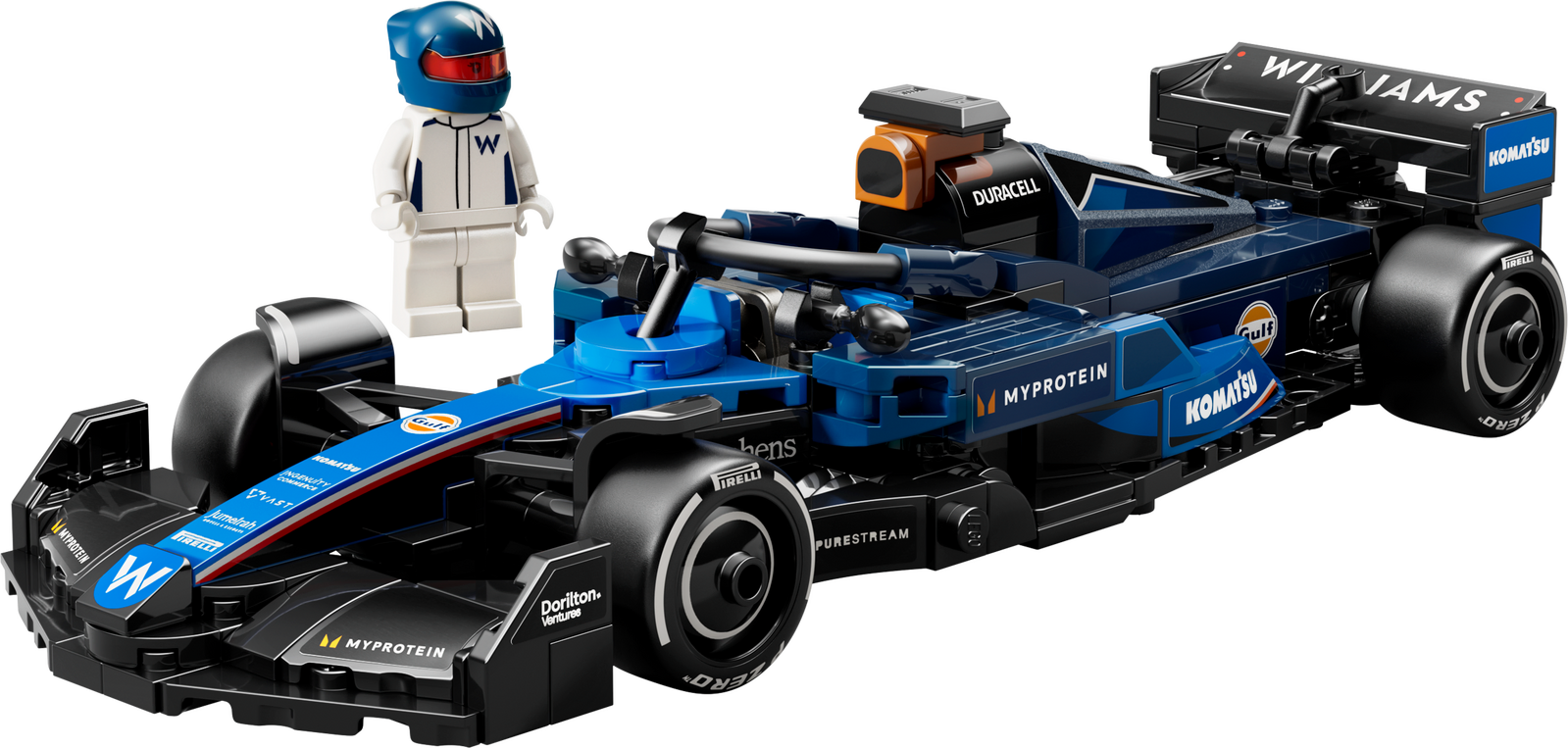 - 1 minifigure – The vehicle kit includes a driver minifigure wearing a Williams Racing outfit and a winged helmet for kids to place inside the cockpit and role-play thrilling race action