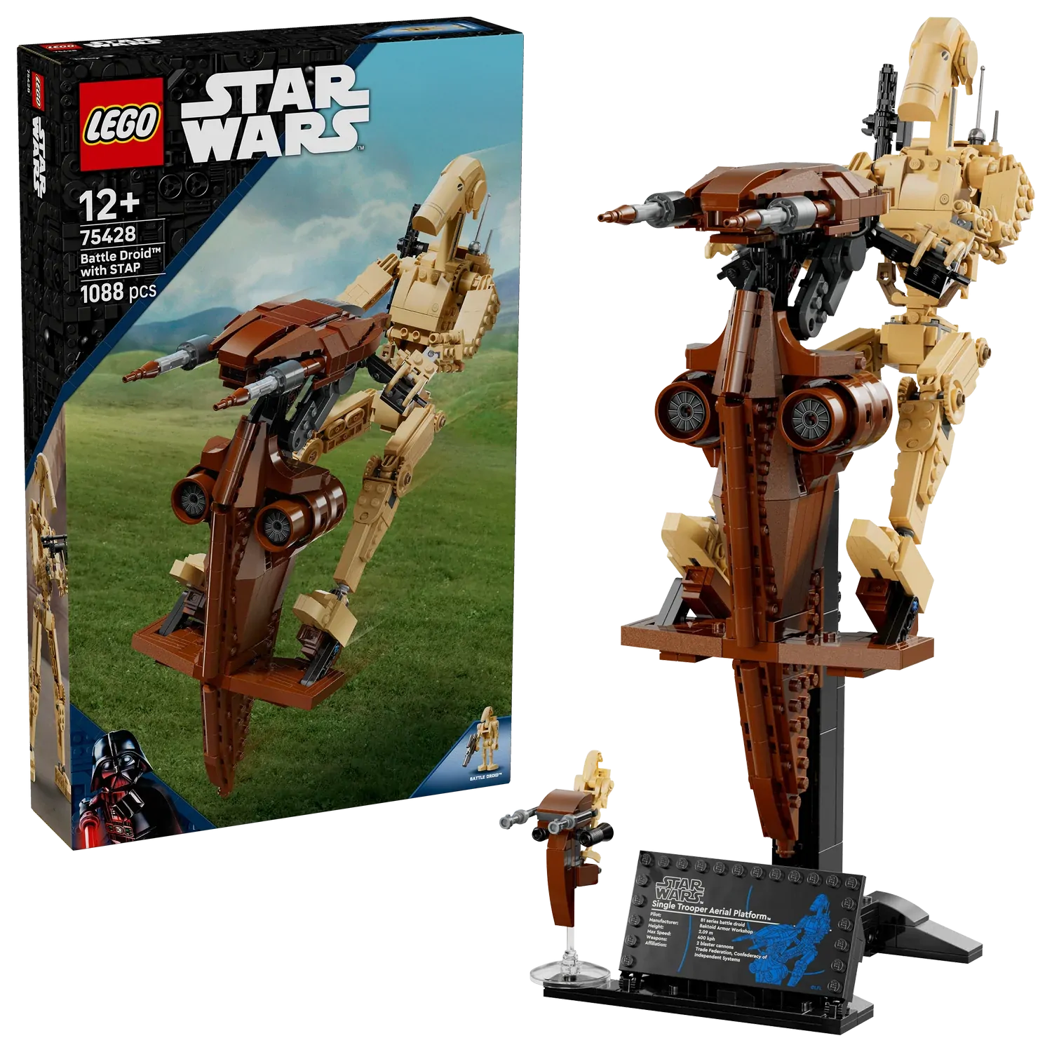 - Battle Droid with STAP build-and-display model – Let kids show off their Star Wars™ passion with this LEGO® brick-built Battle Droid figure with a STAP speeder