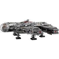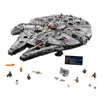 Welcome to the largest, most detailed LEGOÂŽ Star Wars Millennium Falcon model weâve ever createdâin fact, with 7,500 pieces itâs one of our biggest LEGO models, period! This amazing LEGO interpretation of Han Soloâs unforgettable Corellian freighter has all the details that Star Wars fans of any age could wish for, including intricate exterior detailing, upper and lower quad laser cannons, landing legs, lowering boarding ramp and a 4-minifigure cockpit with detachable canopy. Remove individual hull plates to reveal the highly detailed main hold, rear compartment and gunnery station. This amazing model also features interchangeable sensor dishes and crew, so you decide whether to play out classic LEGO Star Wars adventures with Han, Leia, Chewbacca and C-3PO, or enter the world of Episode VII and VIII with older Han, Rey, Finn and BB-8!