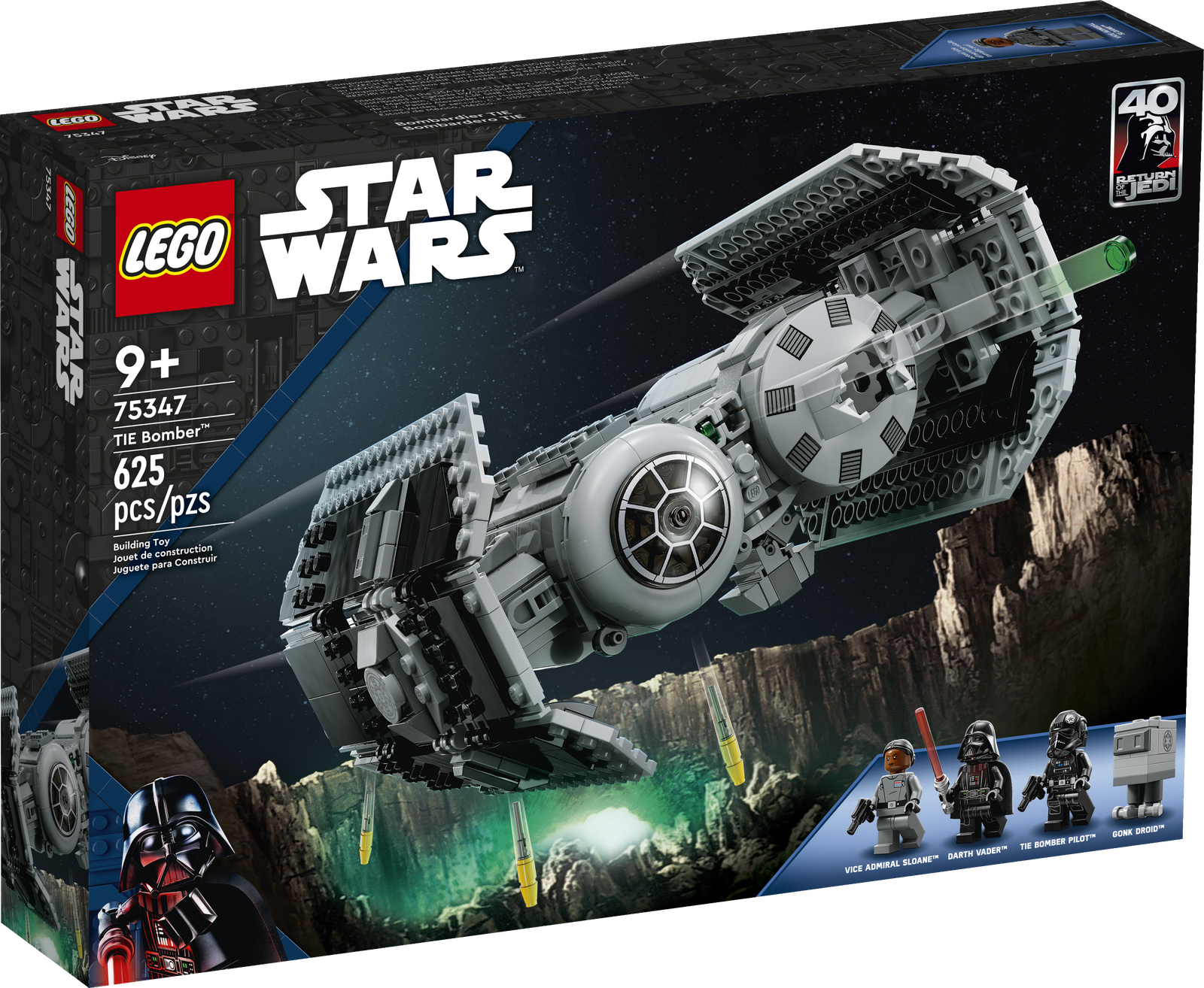 Star Wars : The Empire Strikes Back fans can play out Imperial missions to defeat the Rebel Alliance with this LEGO® brick-built TIE Bomber (75347) starfighter toy. It features an opening minifigure cockpit, a torpedo-dropping function and 2 stud shooters. A top gift idea for Star Wars fans aged 9 and over, this action-packed, buildable toy playset also includes Darth Vader, Vice Admiral Sloane and TIE Bomber Pilot LEGO minifigures with weapons, plus a Gonk Droid LEGO figure and a cart to transport torpedoes to the TIE Bomber. Digital instructions Download the LEGO Builder app for an even more fun and engaging creative experience. It offers a digital step-by-step building guide, intuitive zoom and rotate tools to help kids visualise the real construction model as they build, and more. Awesome building toys The LEGO Group has been recreating starships, vehicles, locations and characters from the Star Wars universe since 1999, and there is an amazing variety of sets to delight fans of all ages. LEGO® Star Wars TIE Bomber (75347) for action play – Fans can relive thrilling Star Wars : The Empire Strikes Back scenes with this brick-built TIE Bomber starfighter toy 3 LEGO® Star Wars minifigures with weapons, plus a Gonk Droid – Darth Vader with a lightsaber, Vice Admiral Sloane and a TIE Bomber Pilot, each with a blaster pistol, plus a Gonk Droid LEGO figure Built for battle play – The TIE Bomber has an opening minifigure cockpit, a warhead bay with torpedo-dropping function for 4 torpedoes (the set includes 6 buildable torpedoes) and 2 stud shooters Cart to transport torpedoes to the TIE Bomber – The cart has space for a LEGO® minifigure driver and for 2 torpedoes at the back Gift idea for ages 9 and over – Give this 625-piece building toy as a Christmas gift, birthday present or special treat for fans of the classic Star Wars saga and any Star Wars collector Build, play and display – This brick-built TIE Bomber model measures over 10 cm (4 in.) high, 16 cm (6 in.) long and 20 cm (7.5 in.) wide Step into a new way of building – The LEGO® Builder app is an interactive digital mentor for kids, guiding them through their building experience on their tablets or smartphones Fun construction toys for all ages – LEGO® Star Wars sets enable kids and adult Star Wars fans to recreate iconic scenes, play out their own creative stories or simply display the buildable models High quality – LEGO® components meet demanding industry standards, ensuring a simple, secure connection every time Safety first – LEGO® components are dropped, heated, crushed, twisted and carefully analysed to make sure that they comply with stringent global safety standards