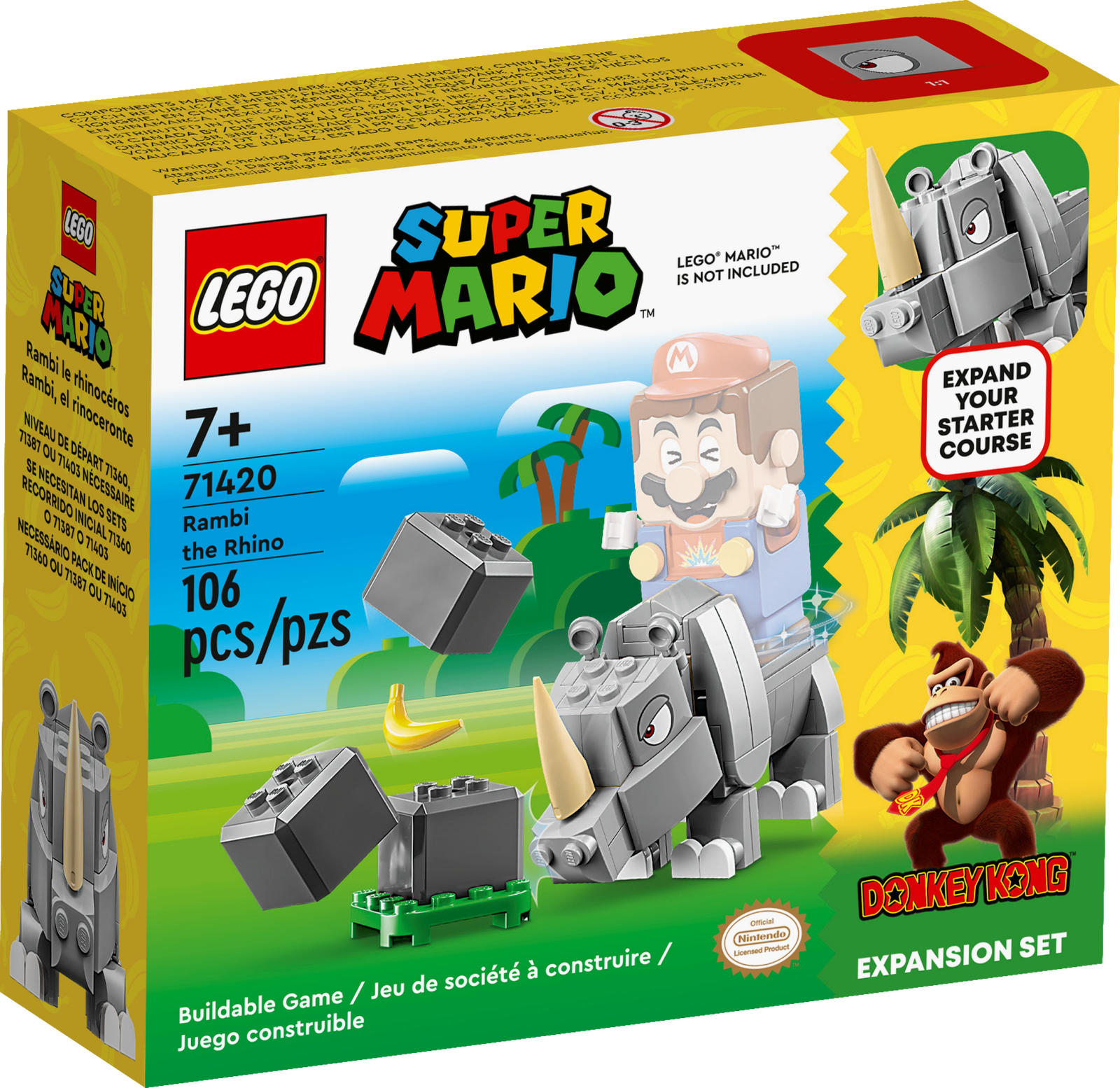 - Stomping, rock-smashing fun Level up with the LEGO® Super Mario Rambi the Rhino Expansion Set (71420), featuring a brick-built Rambi figure and rock elements
