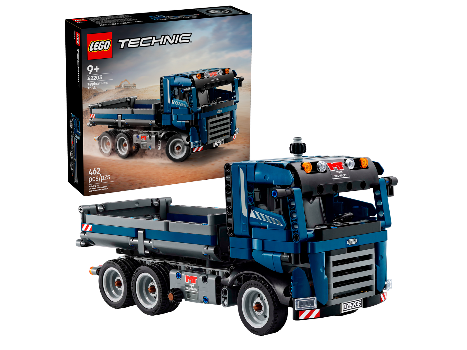 Kids aged 9 and over can create endless construction site adventures with the LEGO® Technic Tipping Dump Truck toy (42203). This blue construction truck toy vehicle set lets kids aged 9 and over imagine a busy working day operating their tipper truck. Steer the truck into position then turn the knob on the side of the truck to tip the lid. Open the doors to see inside the cab, then drive the truck to its next building-site task.