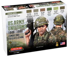 LifeColor US Army Uniforms 1948-1980 Combat & Fatigue Clothing Set (22ml x 6)
