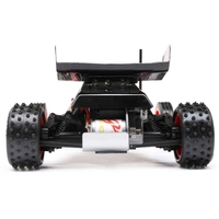 For years, racing enthusiasts demanded a re-release of the JRX2 buggy, the original vehicle that made Losi a worldwide force to be reckoned with, and now they get their wish in a 1/16th scale package. The Losi Mini JRX2 Buggy honours its roots by creating a mini buggy with a classic look and 21st-century performance. With a 5-link rear suspension providing maximum grip in loose conditions, aluminium shocks, and era-specific ribbed front tires, and 4 row step pin rear tires, you get more from a Mini than ever before. It features a rear motor configuration like the original and three different trim schemes that mimic the original box art schemes of the era, all in a total ready-to-run package. Everything about this buggy is designed to deliver a jaw-dropping experience.