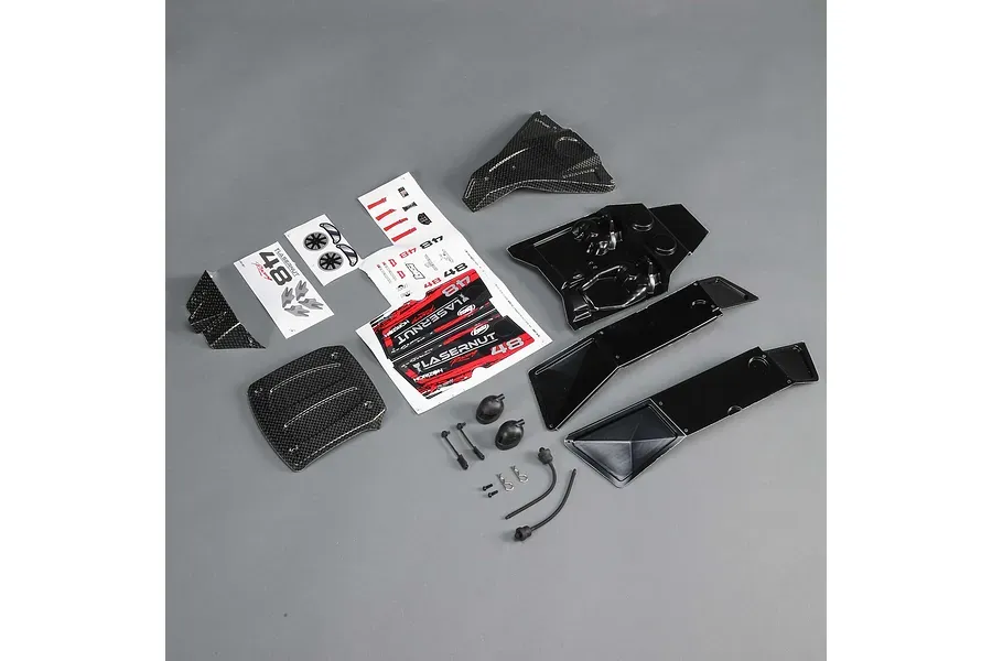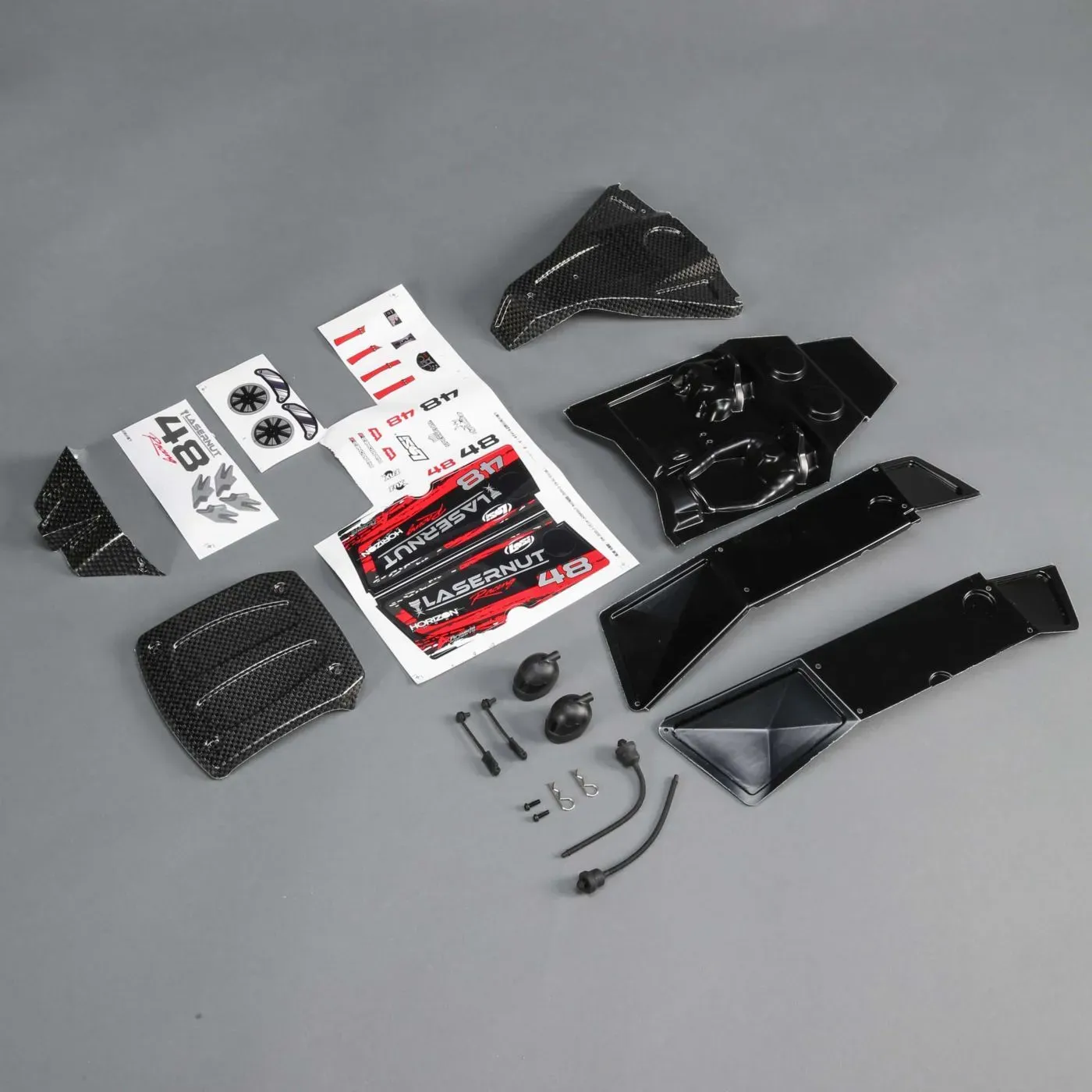 Painted Body Shell for the Lasernut U4. FeaturesPainted & Pre-trimmed for a perfect fit. Includes decal sheet and other accessories. Genuine Losi product. Included items Description. QTY. 1/10 Painted Body Shell. 1. Decal Set. 1. Accessory Set. 1.