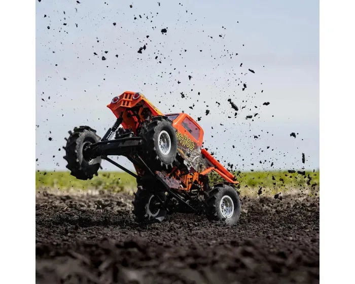 New, ready-to-run Losi® Mega 4WD trucks with officially licensed Bog Hog and King Sling bodies deliver an experience unlike any other Losi product. Mega trucks resemble monster trucks but use a specific size of tractor tire that allows them to tackle mud bogs, make large jumps, and pound through the nastiest terrain. The Losi Mega truck is a combination of everything drivers want — it’s overpowered, overbuilt, and ready to throw mud everywhere!