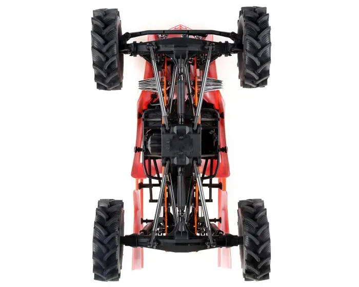 Powder-coated just like the actual trucks, the twin vertical plate chassis provides superior strength and gives you multiple setup and tuning options. For example, two battery mounting options allow drivers to use a "shorty" pack for a lower center of gravity or run a full-size pack to maximize run time. The chassis plates also provide tuning options for those who want to mount the shocks to the lower 4-link bar (sold separately) for the ultimate handling characteristics.
