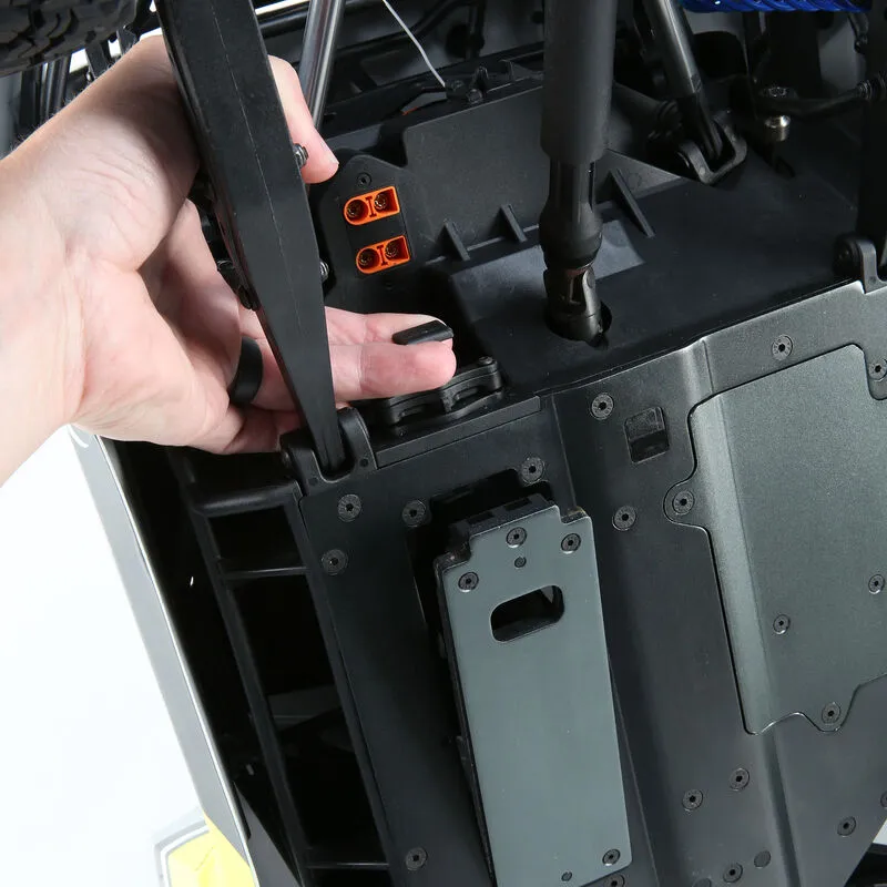 Just like the 1:1 desert trucks, the Super Baja Rey 2.0 comes with a super-rigid roll cage made of super-tough composite material that enhances the truck's scale looks and durability. It is integrated with the 4mm anodized aluminium chassis plate providing the ultimate protection for your truck and electronics.