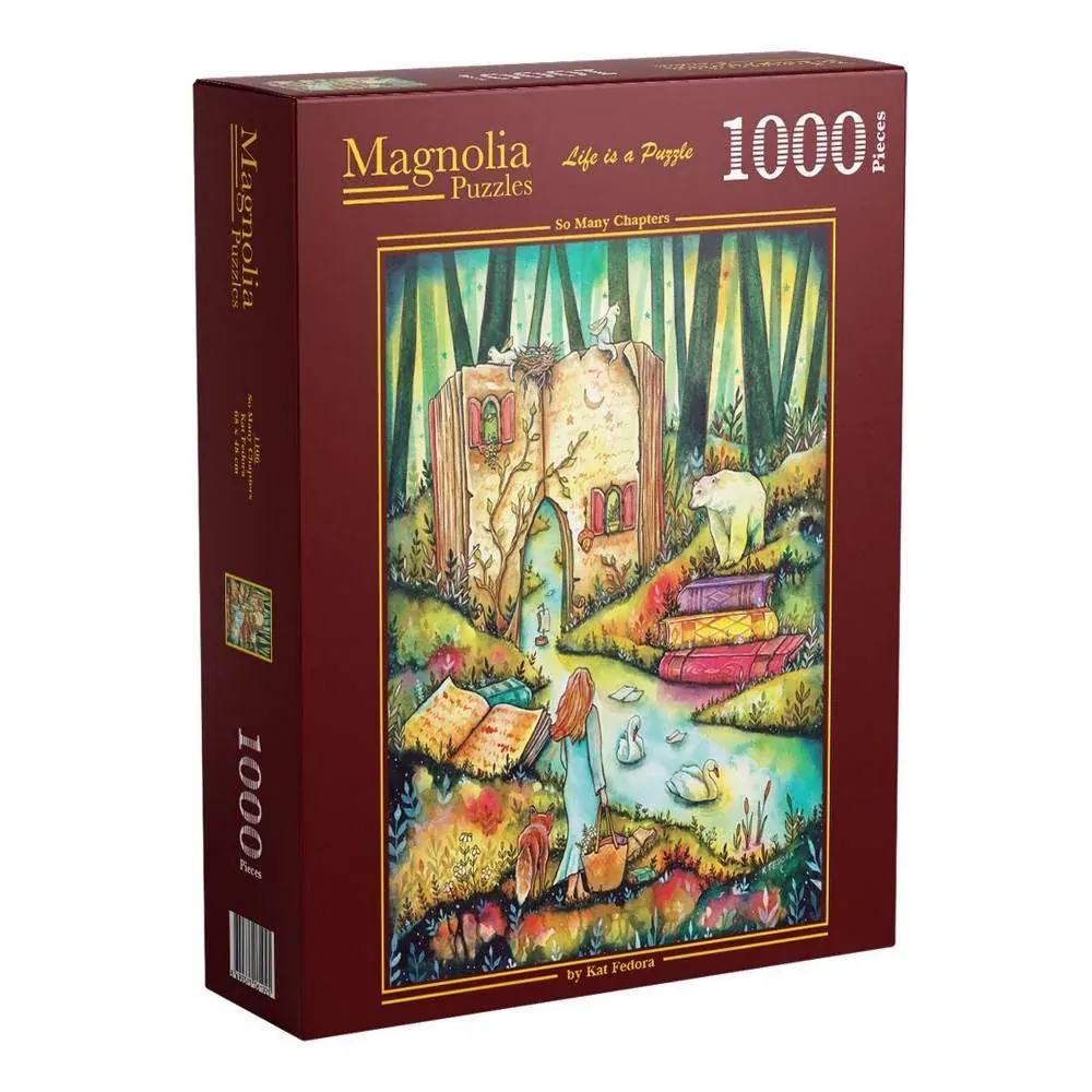Step inside Kat Fedora's bookish world with this beautiful So Many Chapters 1000 piece puzzle. Kat Fedora is a celebrated illustrator and this puzzle forms part of her second collection with Magnolia Puzzles