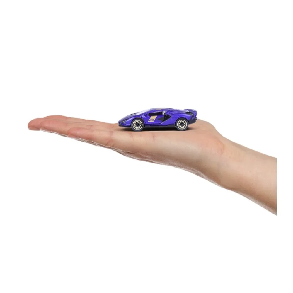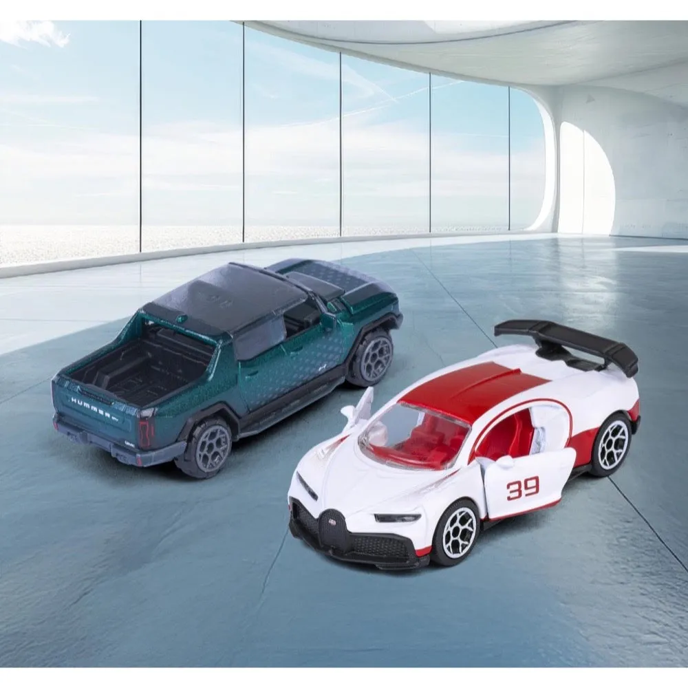 Each model car is a detailed replica of its larger-than-life original and impresses with its striking design and opening hoods or doors – the Lamborghini's doors even open upwards! 1 of 6 toy cars from the showroom icons: - Ford Mustang Dark Horse (blue) - Toyota Tacoma TRD Pro (gray) - Lamborghini Sián FKP 37 (purple) - Chevrolet Corvette (green) - Bugatti Chiron Pur Sport (white) - GMC HUMMER EV (green) PLEASE NOTE: When you place your order, you will receive ONE metal car, selected at random.