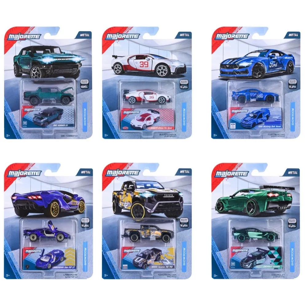 The boxes are back, with the all new Showroom Deluxe range. Six classic Majorette castings, each with rubber tyres, suspension, opening parts and handy cardboard collectors box.