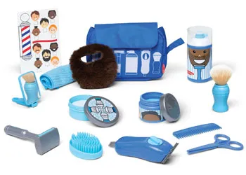 Set up your own barbershop and enjoy hours of imaginative play with the Melissa & Doug Barber Shop Play Set. Kids can play the role of the barber or the customer while practising fine motor skills, creativity, and language development. The set includes a vibrating trimmer, shaving cream can, play rolling razor, scissors, brush, comb, textured play pomade, washcloth, adjustable mirror, and a reusable double-sided activity card—all neatly stored in a zippered shaving kit. Children can enjoy a “traditional” shave with the soft-bristled brush and squishy shaving soap insert, or a “modern” trim using the pump can, trimmer, and rolling razor for a smooth finish.