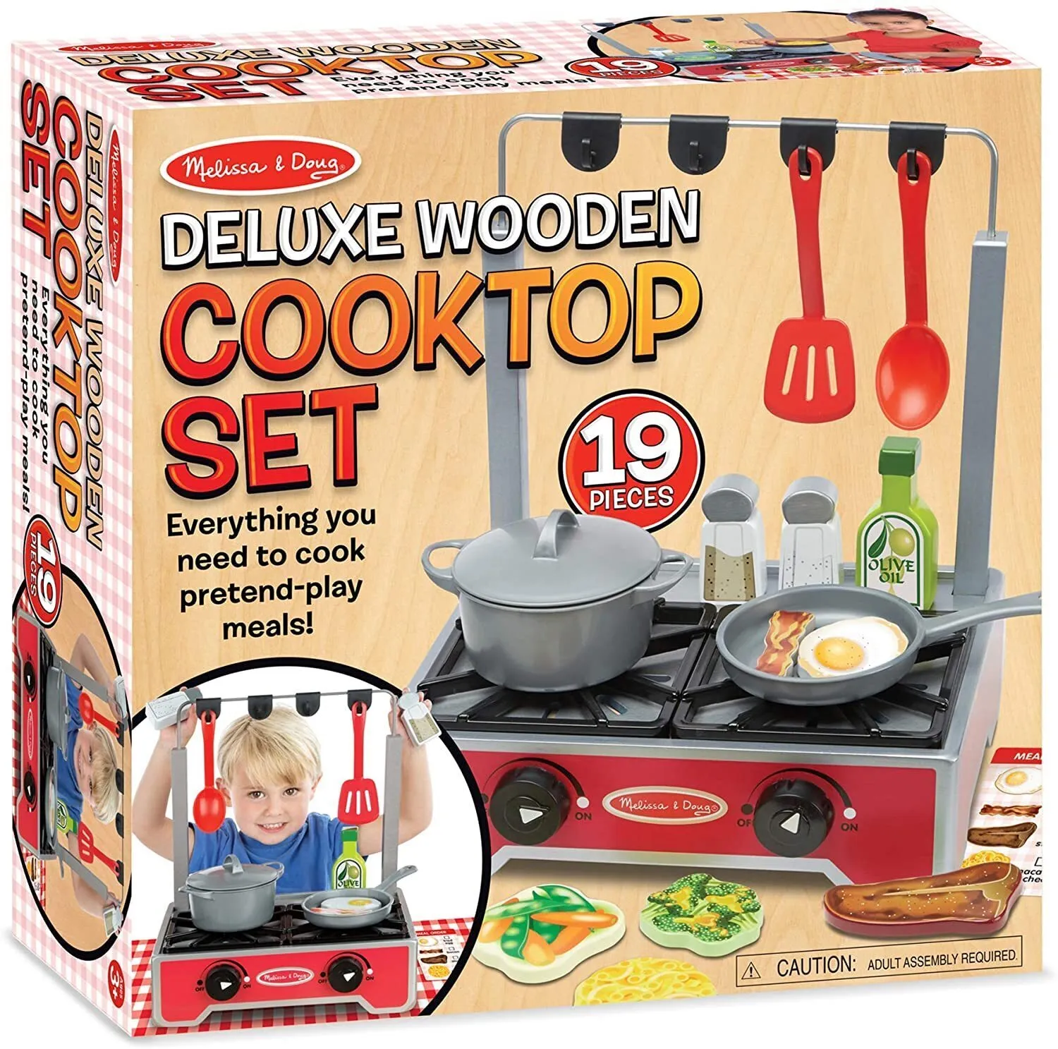 Features: 19-piece set with wooden food items to cook and prepare using pretend cooktop Includes all utensils and ingredients for pretend cooking Rack for hanging pots, pans, and utensils Includes pot, pan, fitted lid, spoon, and spatula Double-sided food pieces show one side uncooked and the other cooked Sturdy wooden construction Promotes hand-eye coordination, creative expression, and imaginative play Dimension: 14.2 x 14.2 x 5.Our selection of Melissa and Doug is made with precision and care to ensure that your child has hours of fun playing with them. Plus, our prices are unbeatable, so you can stock up on all the toys your child wants. Ready to shop? Get yours now! You can also head over to our Melissa & Doug products and see for yourself what makes us the best place to buy toys online. years.