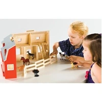 This two-story barn is stocked with 7 realistic plastic farm animals, a wooden ladder and a folding gate enclosure. Chunky handles let you take this little bit of country wherever you go!