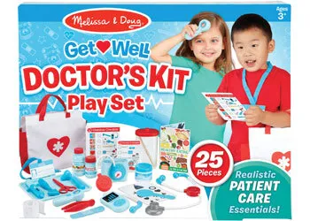 The doctor will see you now! The 25-piece Melissa & Doug Get Well Doctor's Kit Play Set offers realistic accessories let little doctors help patients get well! Kids three and older can pretend to check temperature, heartbeat, blood pressure, eyesight, hearing, and more.