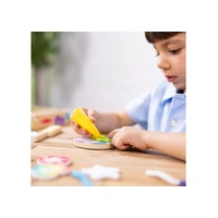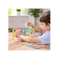 A reusable activity card lets young confectioners price their offerings and shows them how to use the decorating tool to swirl designs on their deliciously imaginative lollipops. The reusable lollipop play set promotes hand-eye coordination, sorting and counting skills, and imaginative play.