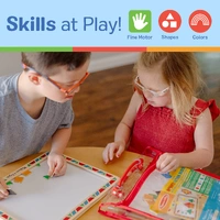 Younger children will enjoy using the shapes to replicate the 12 geometric pictures included, while older children will enjoy creating mosaic patterns and pictures directly on the magnetic board.
