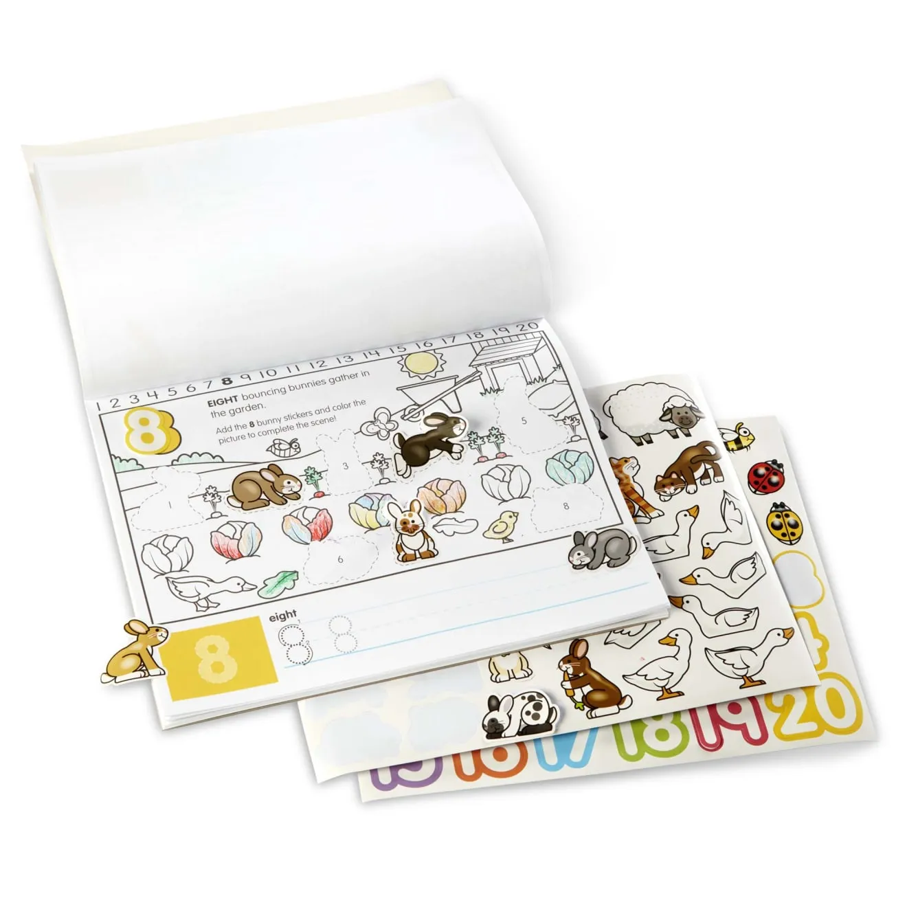 Count on kids having hours of fun with this jumbo coloring, writing and sticker pad jam-packed with fun number activities! There are number-themed farm scenes to color, 230 stickers to match to pictures on the scenes, and tracing and writing activities to help kids four and older learn the numbers one through 20.