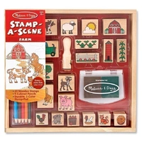 A barn, tractor, sheep, bunny, pig, and a barn’s worth of animals and crops come in this colour-in stamp set for kids! This extra-large set of wooden stamps makes it easy to create an exciting storyline or a colour-in scene: It includes 20 rubber-faced, wooden-handled outline stamps and a two-colour stamp pad filled with brown and green washable ink.