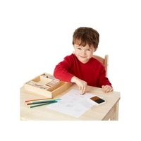 Go wherever your imagination takes you! It's easy to mix and match these detailed vehicle and traffic sign stamps to create hundreds of visual adventures. All the pieces, including the 2-color inkpad, store in a sturdy wooden box. Washable, kid-friendly ink.
