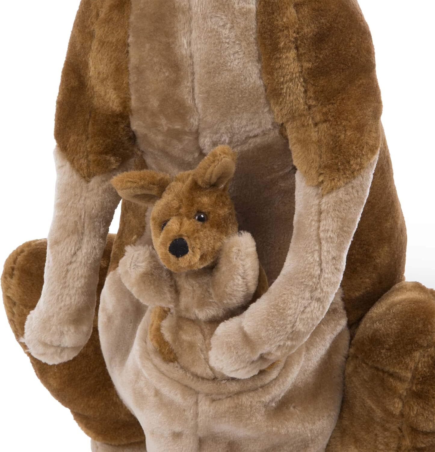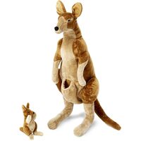 The lifelike Kangaroo mom and baby from Melissa & Doug are ready to spring into action in your child’s room—and their imagination. The kangaroo’s sturdy wireframe construction and long tail and feet help it stand tall, and the baby—or joey—is soft and huggable. Plus the little baby kangaroo can go on adventures with your own little one—and then store snuggly in the mama’s pouch.