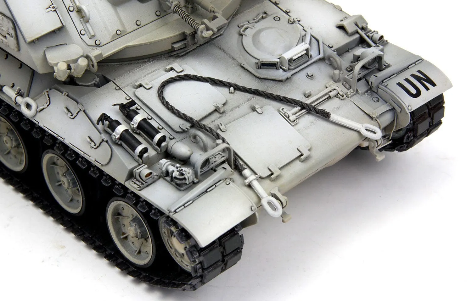 This 1/35-scale French AUF1 TA 155mm Self-Propelled Howitzer plastic model accurately reflects the turret interior construction; all hatches of the turret can be built open or closed; the running gear is realistically replicated with the help of the movable torsion bar suspension; cement-free workable track links are included; precision PE parts are included, and two paint schemes are provided.