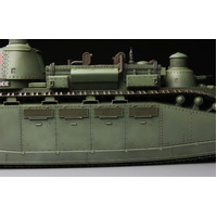 This 1/35 scale French Super Heavy Tank Char 2C plastic model kit precisely replicates the features of the first riveted super heavy multi-turret tank designed during WWI. Lights are provided with clear parts. All grilles of the engine compartment are represented in PE parts. Cement-free workable tracks are easy to assemble. Paint options are offered for three vehicles (No.90/93/97).