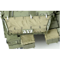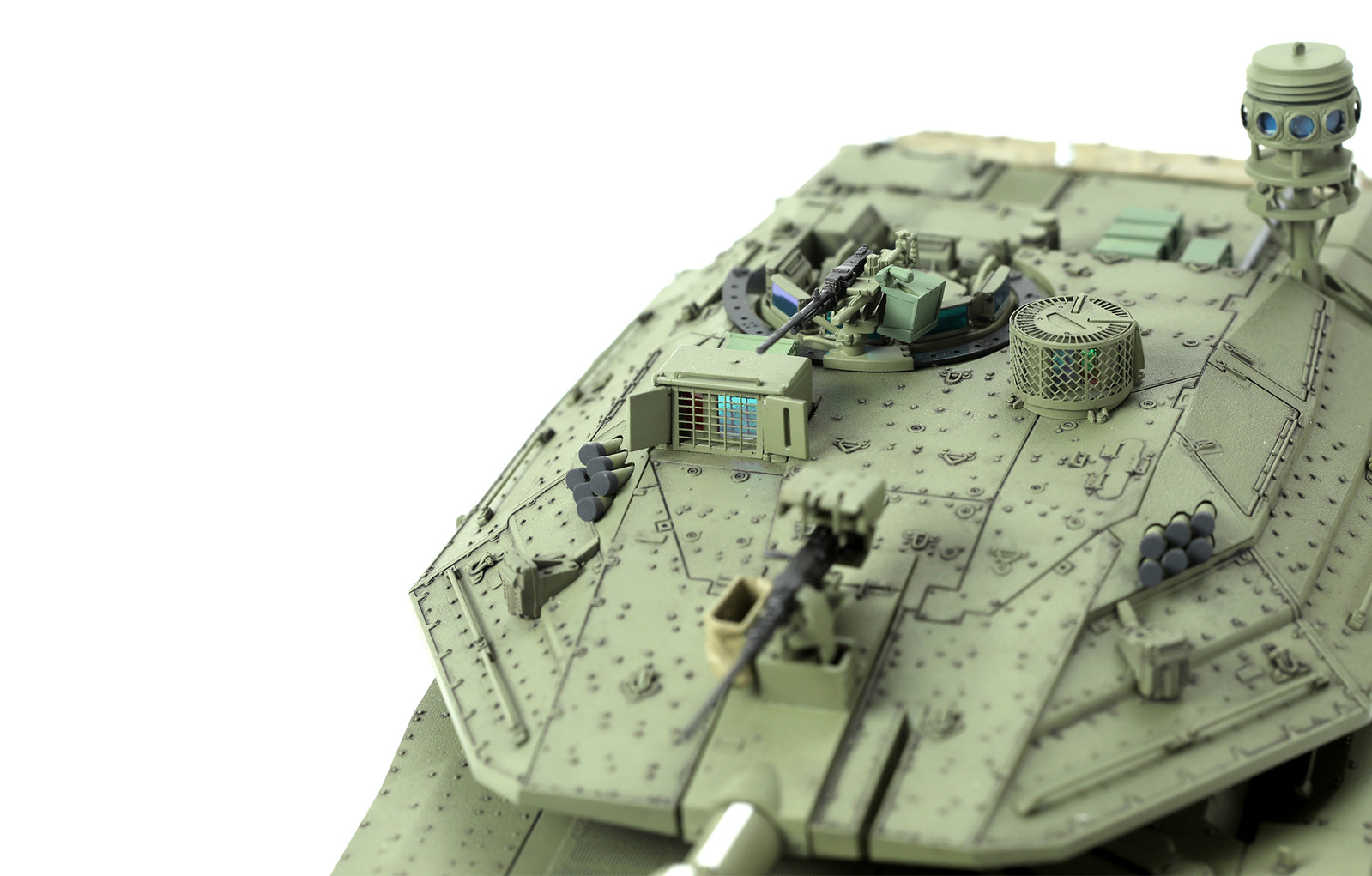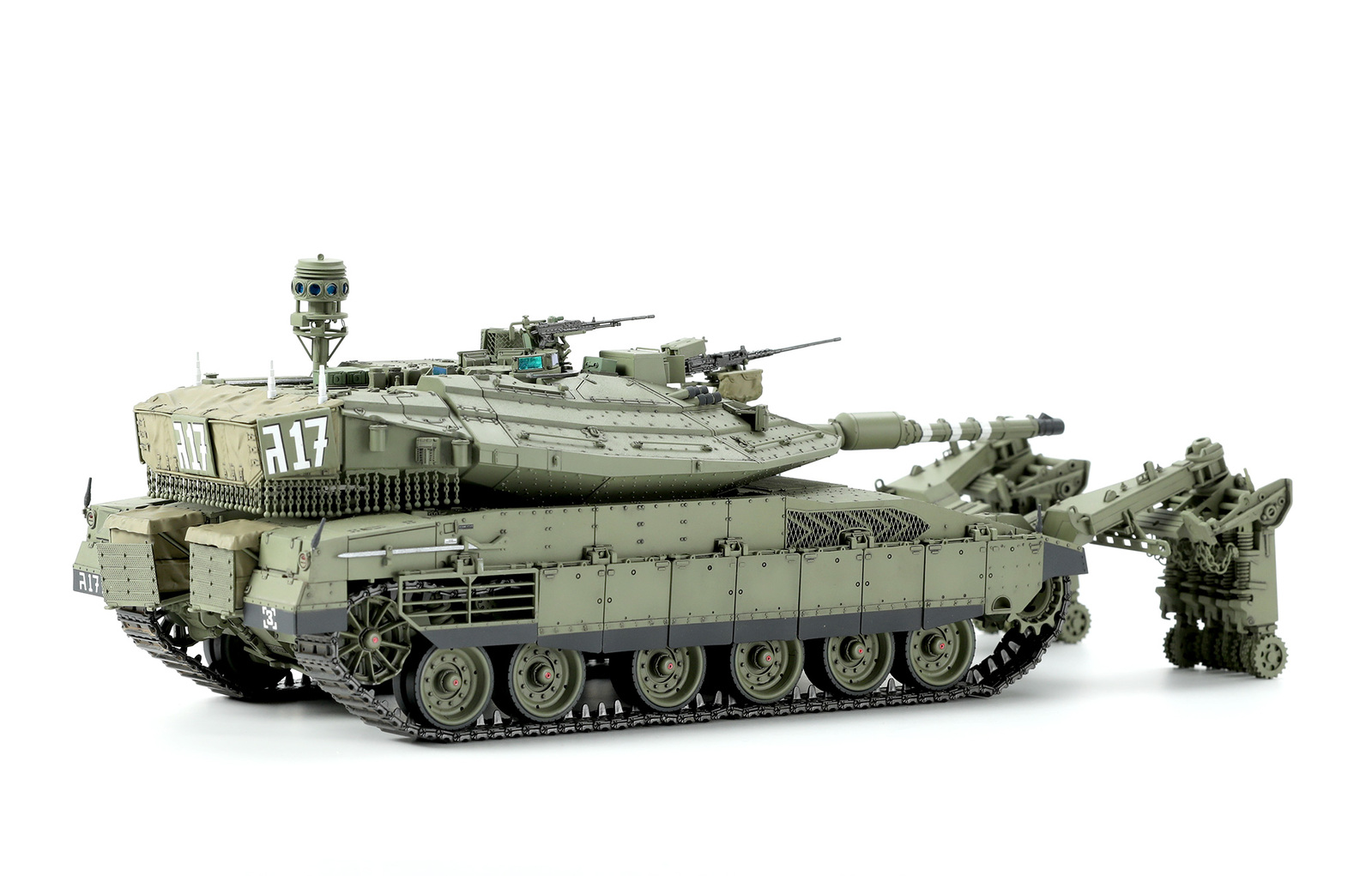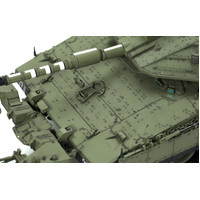 This latest model kit features a brand-new tooling turret, a precision âDroidâ active protection system and a movable Nochri-Kal mine roller system. This kit also includes a movable suspension system, workable assembly tracks, precision PE parts and parts designed by digital sculpting. The finished model will be 264mm long and 113.6mm wide, and it can be built as a Merkava Mk.4 or Merkava Mk.4 LIC.