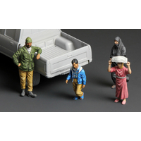 Figures presented in this kit are civilians frequently appearing in local conflicts in modern Middle East region. 1 militiaman having a rest, 1 walking woman and 2 children are included. Poses are natural and vivid. Lively and interesting dioramas can be created by collocating them with pickups.