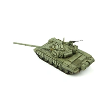 This 1/35 scale Russian Main Battle Tank T-72B1 plastic model kit features clear lights, periscopes and optical equipment, separate anti-radiation applique parts, realistic and movable torsion bar suspension, easy-to-assemble workable tracks. The SPS-028 V-84 engine can be installed inside (sold separately). Fine PE parts are included and 9 paint schemes are provided.
