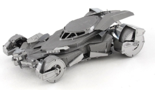 The classic and iconic Batmobile has once again been redesigned. This time, for Ben Affleck in his run as the Caped Crusader. It bears a very striking resemblance to the version of the Batmobile that was driven during the 7 year and 3 movie reign of Christian Bales Batman. The individual pieces are simply popped out of the two metal sheets and assembled without the use of solder or glue by simply bending and/or twisting the connection tabs. Assembled, it is an authentic, museum-quality, laser cut replica of the Batmobile used in the 2016 Batman v. Superman movie. ASSEMBLED SIZE: Approx 3.5..(L) x 1.5..(W) x 1.0..(H) 2-Sheet Model Kit = SKILL LEVEL = CHALLENGING