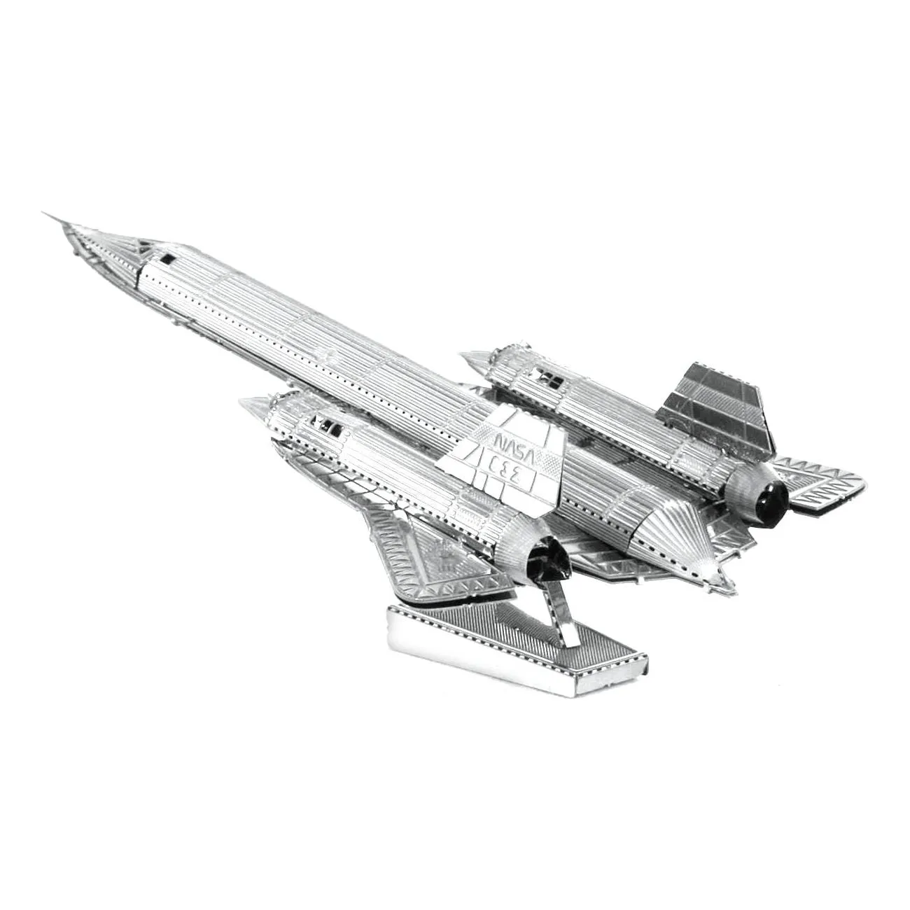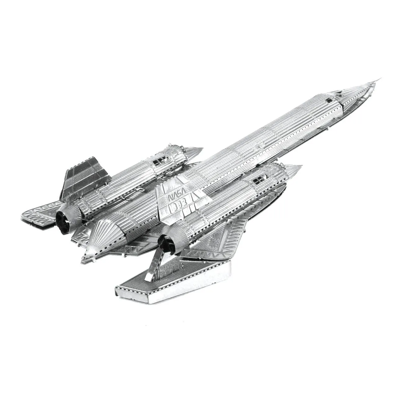 METAL EARTH - SR-71 BLACKBIRD Was a long-range, Mach 3.5+ strategic reconnaissance aircraft developed by Lockheed and its Skunk Works® division. It was the first aircraft to be constructed mainly of titanium. At full velocity the airplane surface heats up to over 260°C+ (500 °F). A total of 3,551 missions were flown and not one Blackbird was lost due to enemy military retaliation. Note: Skunk Works is the nickname for Lockheed's Advanced Development Programs. Skunk Works engineers have developed highly advanced, military aircraft, often in secret, since World War II. Number Of Sheets: 1 Sheet Difficulty: Moderate Assembled Size: 3.98"L x 2.05"W x 1.18"H (10.1 x 5.2 x 3 cm) Ages: 14+