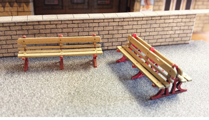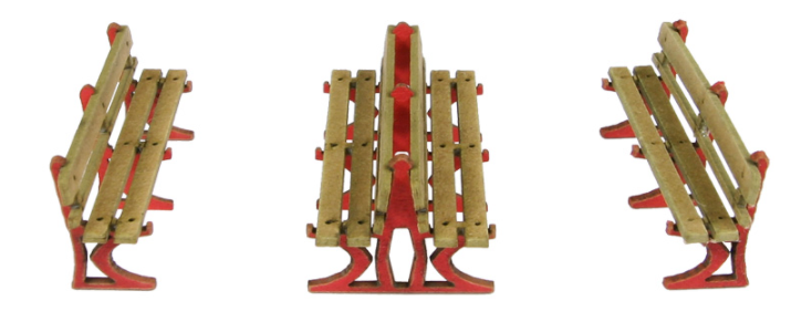 A set of four single 00/H0 scale platform benches, and one double bench Made with fine detailed laser-cut card components. Designed to go alongside any of our station kit Single Bench - Length 32mm Double sided Bench - Length 32mm - Width 15mm KIT INSTRUCTIONS