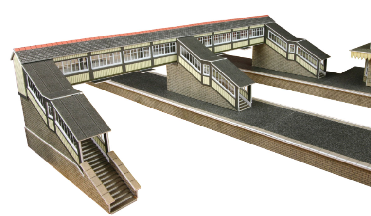 An intricately designed covered, platform to platform bridge that is easily extended with the addition of extra kits to reach more platforms. The kit also includes extra base steps allowing it to be used at trackbed level. Double track span bridge Span - 96mm KIT INSTRUCTIONS KIT FOOTPRINT (USE TO PLAN YOUR LAYOUT)