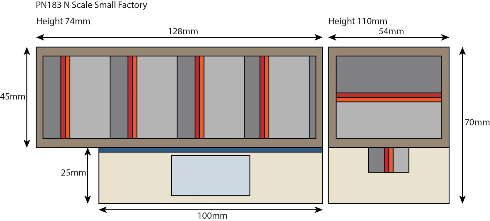 A sturdy little kit with fine detailed recessed windows and loading bays. Designed to stand alongside the forthcoming Warehouse and Boiler House/Chimney kits due later. Full assembly instructions included Designed to stand alongside our other industrial buildings PN182 Warehouse and PN184 Boilerhouse and chimney. KIT INSTRUCTION SHEET 1 KIT INSTRUCTION SHEET 2 KIT FOOTPRINT (USE TO PLAN YOUR LAYOUT)