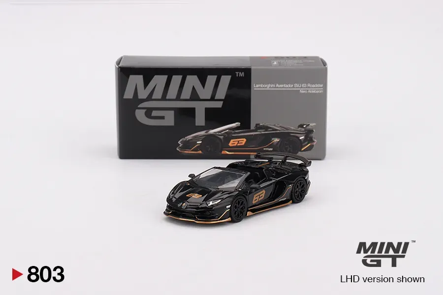 Mini GT 1/64 Lamborghini Aventador SVJ 63 Roadster Nero Aldebaran Diecast Model Car
