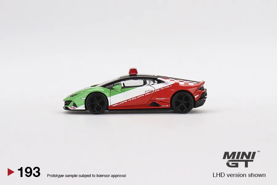 Mini GT 1/64 Lamborghini Huracán EVO Bologna Airport 2020 Follow-Me Car Diecast Car