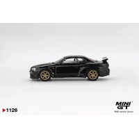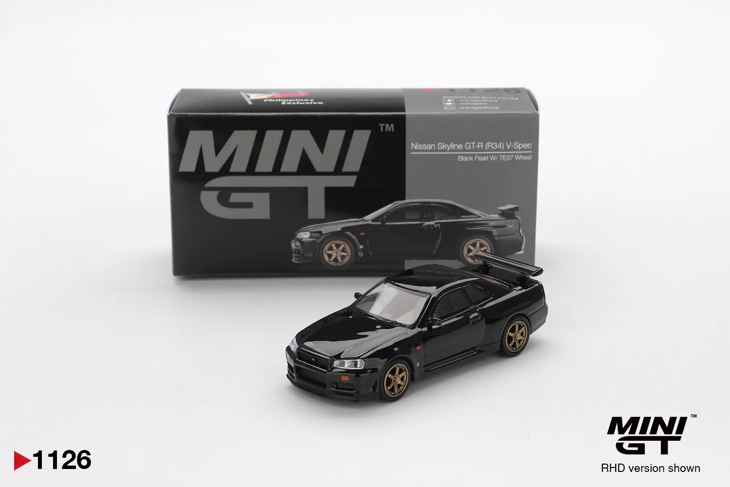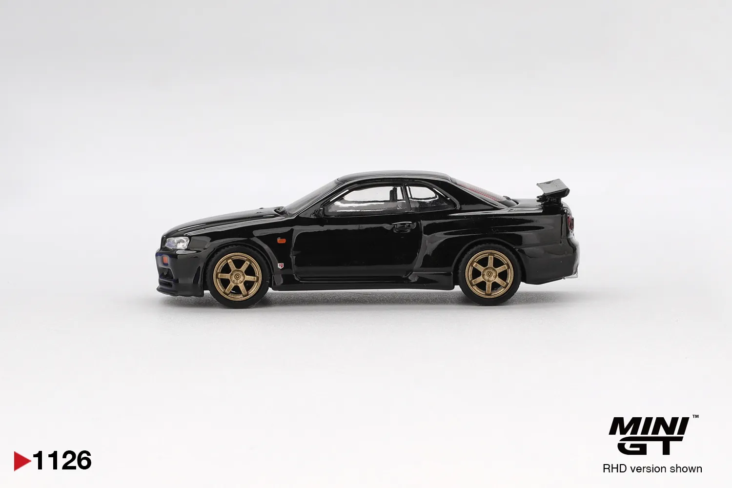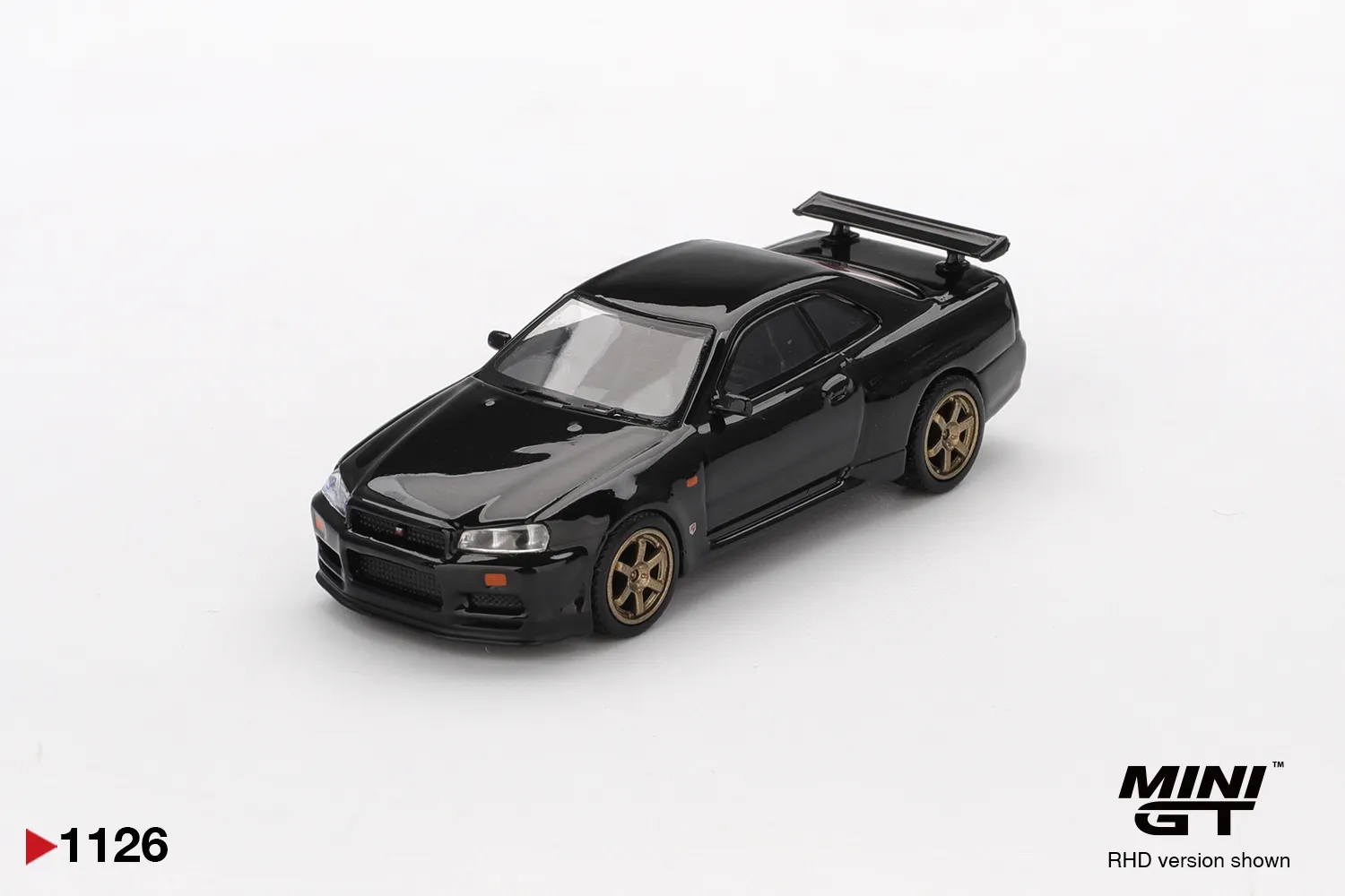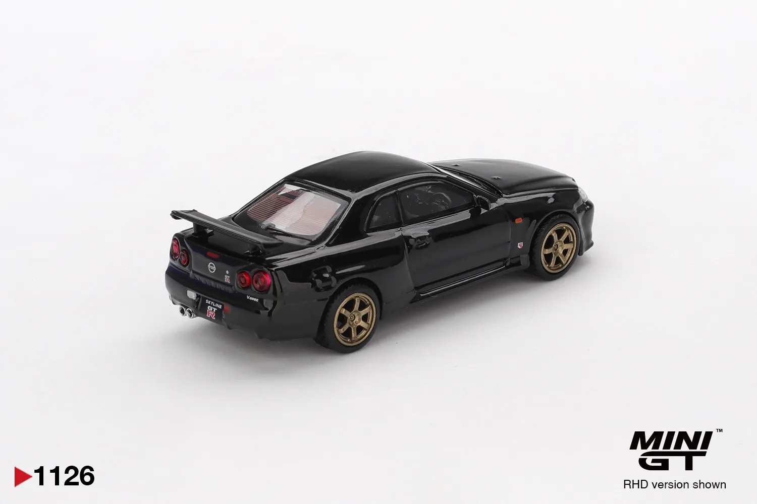 Mini GT 1/64 Nissan Skyline GT-R (R34) V.Spec Black Pearl w/TE37 Wheel Diecast Model Car