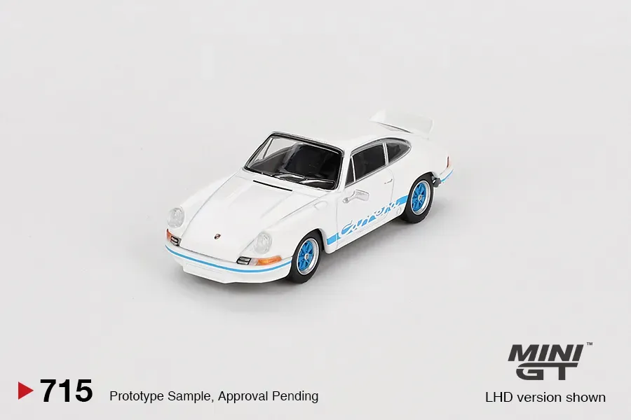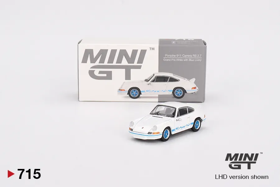 Mini GT 1/64 Porsche 911 Carrera RS 2.7 Grand Prix White with Blue Livery Diecast Model Car
