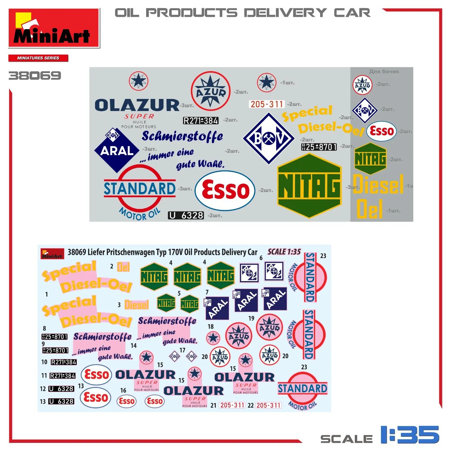 Miniart 38069 Liefer Pritschenwagen Typ 170 Oil Products Delivery Car 1:35 Model Kit
