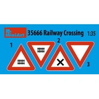 This 1/35 scale model kit features a detailed railway crossing, perfect for adding realism to dioramas and model railway scenes. The set includes railway tracks, crossing barriers, road signs, and mechanical control devices, capturing the look of classic railway infrastructure.