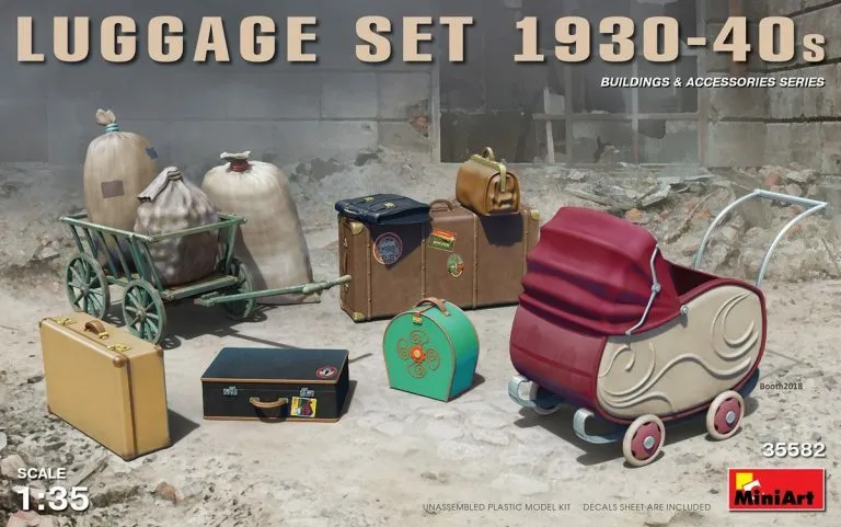 Free Shipping For Orders Over $150 To Metro Areas* (Online orders only)Miniart 35582 1930-40s Luggage Set 1:35 Model Kit w/Pram, Sacks, Cart and suitcases