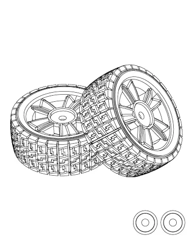 This is the MJX 1/14 Pre-Mounted On-Road Wheels (2pcs) [1415A1] 2 pack of pre-glued on-road style wheels to fit the MJX 14301 14302. Part Number 14151A