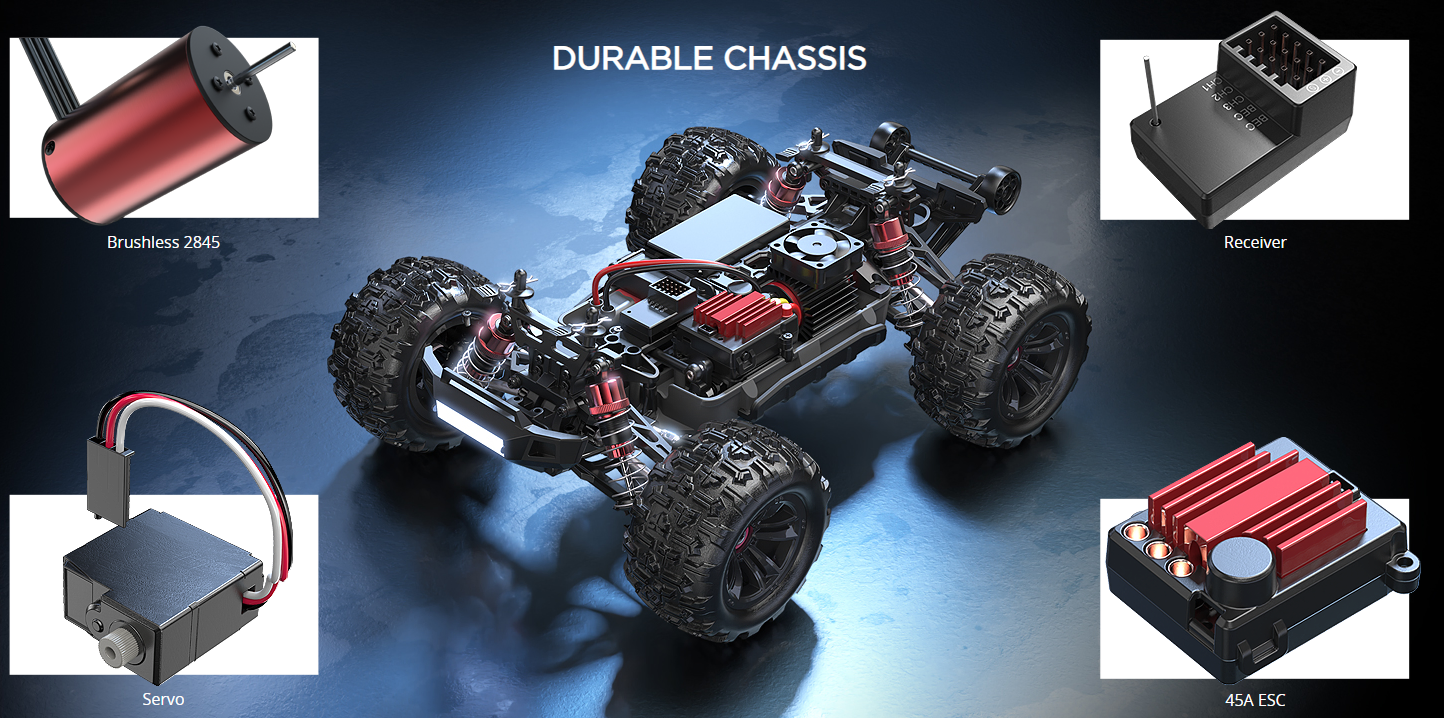 - Professional brushless racing motor for high speeds of up to approx. 45km/h