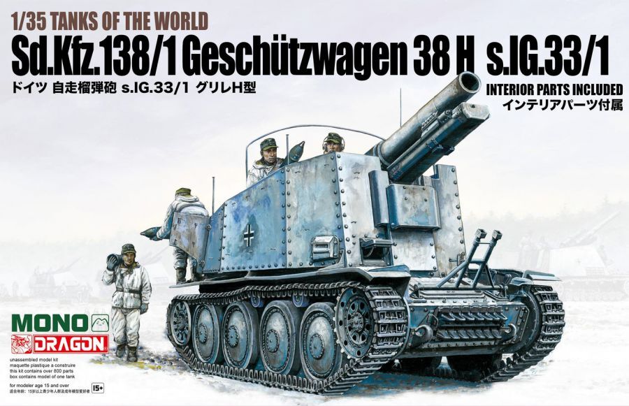 Mono X Dragon 1/35 Sd.Kfz.138/1 Geschutzwagen 38 H s.IG.33/1 w/Interior Plastic Model Kit [MD005]