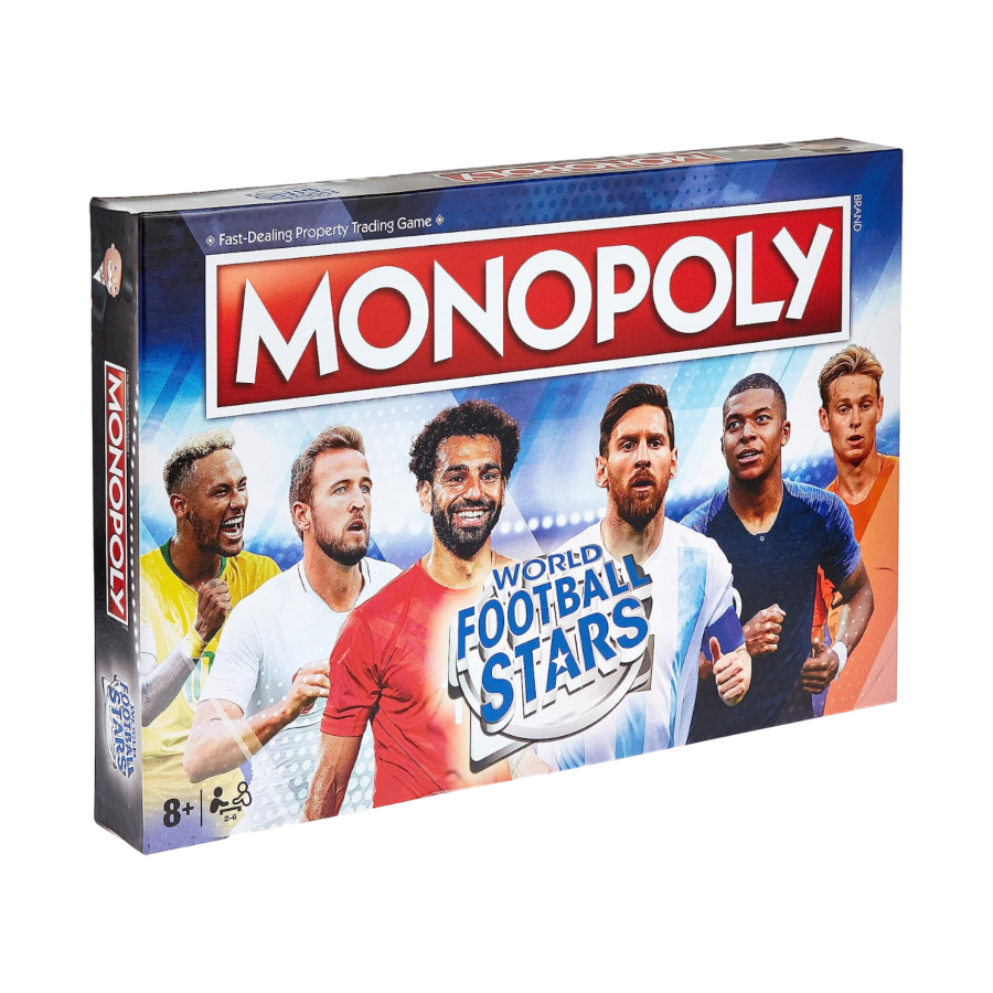 Do you have what it takes to be a football legend?Prove that you are the world's number one with the World Football Stars Monopoly.Put your management hat on as you travel around the board snapping up those crucial deals and delivering spot on tactics.Challenge friends and opponents to bidding wars for your favourite players.You even get your hands on some of the best stadiums in the world and ways to travel to them!So what are you waiting for?Reach for glory and become the football Monopoly champion!